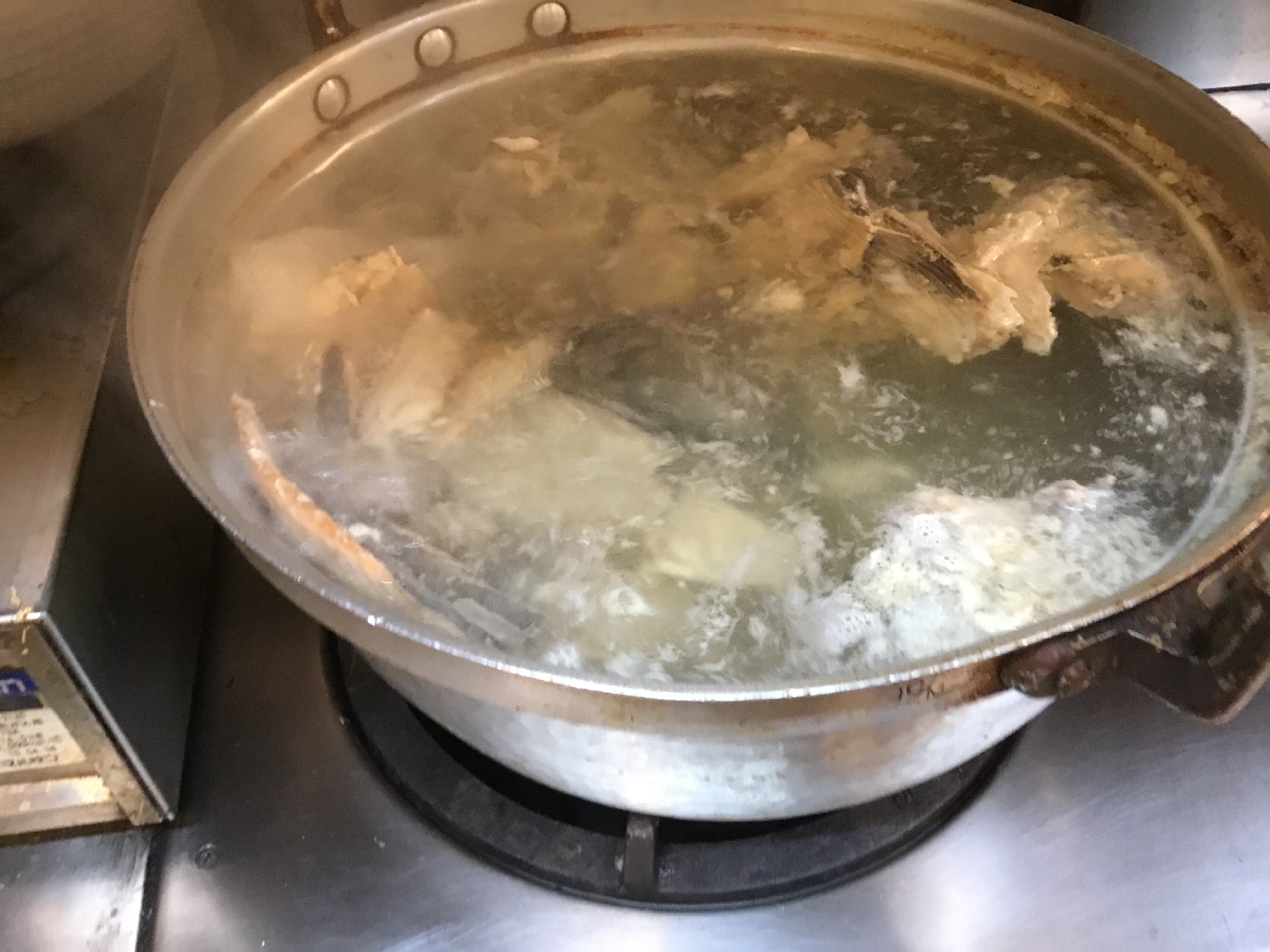 次の仕込みは、沢山の魚を下ろしたあとに出る、あらの活用です。