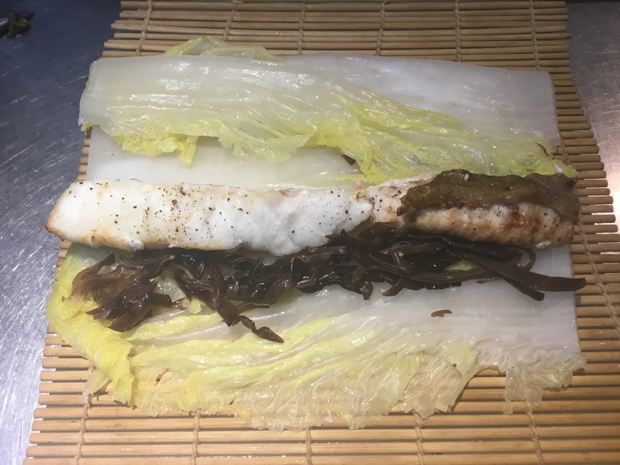 焼いたヒラメを芯にして、三浦半島でさかな人 長谷川さんが採ってきてくれた