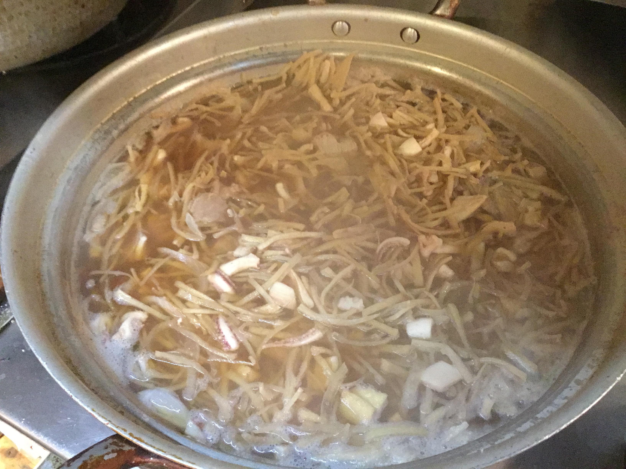 くず野菜と一緒にさっと炊きます。