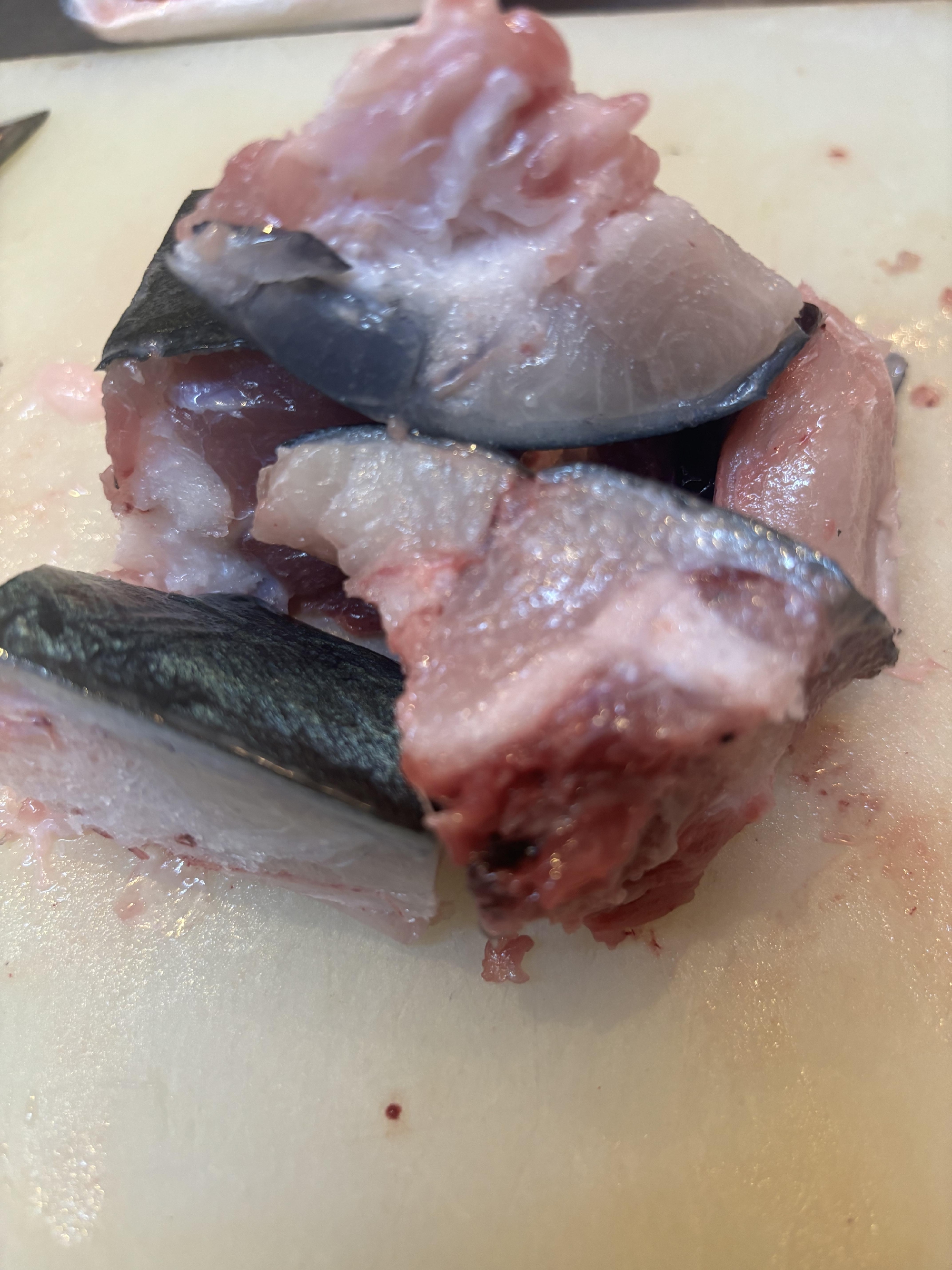 大きな頭を割りましたら、魚を〆る処理のおかげで、